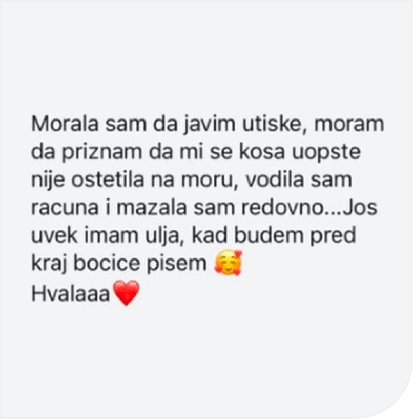 Nakon eliksira preporučuje se naneti par kapi Miamor ulja za punoću, sjaj i stilizovanu frizuru.